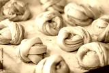 Ready to bake traditional Swedish cardamom sweet buns Kanelbulle on oven tray cover by baking paper.