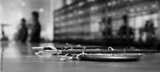 Vintage traditional pharmacy scales kettlebell black-white photo.