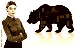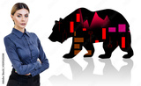 Businesswoman with crossed hands imagine bear over white background.