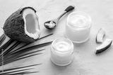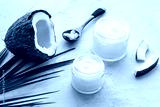 Homemade coconut cream - still life with spoon - on beige background