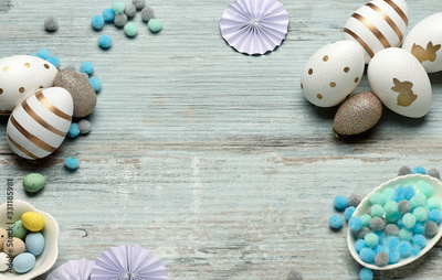 Easter Blue with eggs for postcard, Easter egg