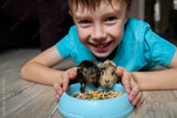 Pet baby Guinea pigs. Feed your Pets a balanced feed. Care, attention, love for rodents. Boy Protect Guinea pigs hands.