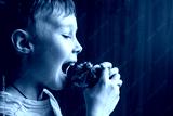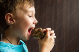 The boy mocks the Guinea pig. The child wants to bite off the head of the pet. Joke.