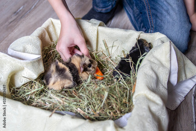 Feed carrots to baby Guinea pigs. Care of Pets.