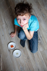 Sea buckthorn berries and vitamins in hands. Choose between natural and artificial. Care, healthy eating. The boy thinks about the benefits of berries.