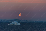 Beautiful moonrise in Greenland. Iceberg at sea.