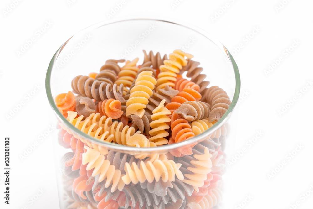 Glass jars of uncooked noodle or macaroni