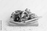 Traditional Turkish foods of patisserie,bagel,tea,cherry tomatoes on the wooden plate.White background,close up taken.