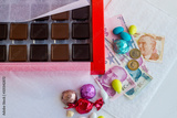 The Sugar Feast after Ramadan Month,designed with madlen chocolates,candy and Turkish banknotes.Feast shopping concept.