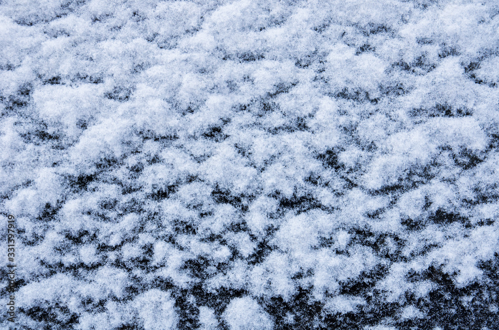 Snow white texture on black background in the form of flakes