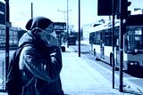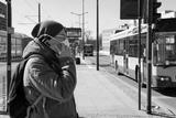 Man in face mask travel public transport while coronavirus and pandemic. Man talking phone and protect health while covid19 in a town.