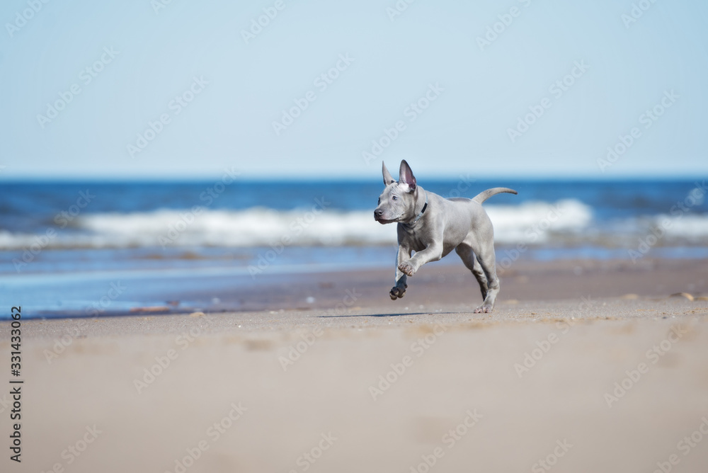 thai ridgeback puppy running on the beach