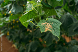 Cucumber plants growing in a traditional greenhouse in Almería. Integrated pest management technique in the field of crops. Integrated fight