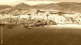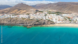 Morro Jable Canary Island, Fuerteventura Spain, Aerial view on coast of atlantic ocean and beach, Drone shot of sea