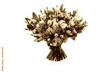 Fresh, lush bouquet of colorful flowers for present isolated on white background. Wedding bouquet of yellow roses and freesia flowers