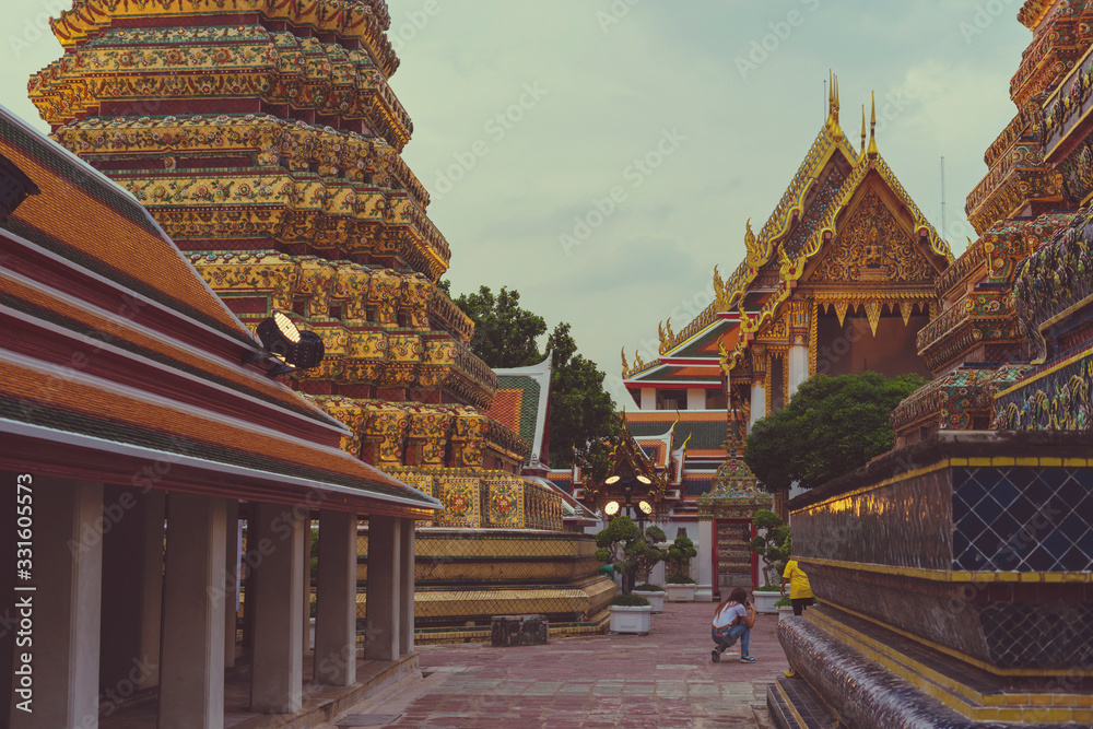 Classical Thai architecture of Wat Pho public temple in Bangkok, Thailand.