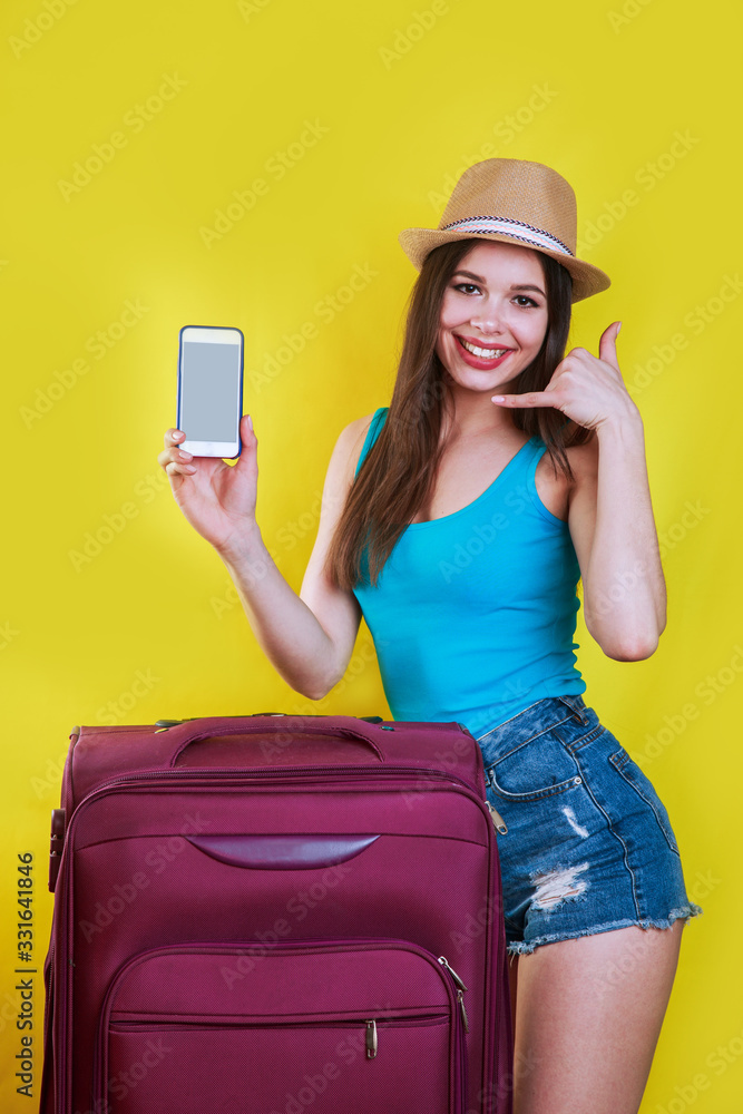 Book your flight. Application for buying airline tickets online on cellphone in female hand.