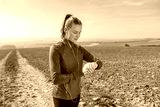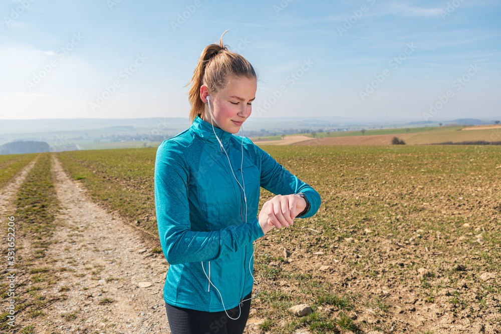 jogging on rural trail at spring time
