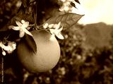 Valencian orange and orange blossoms. Spain. Spring harvest