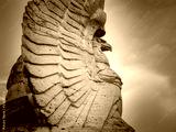An eagle statue stands pride in front of the Polish War Cemetery of Montecassino, Cassino, Italy.