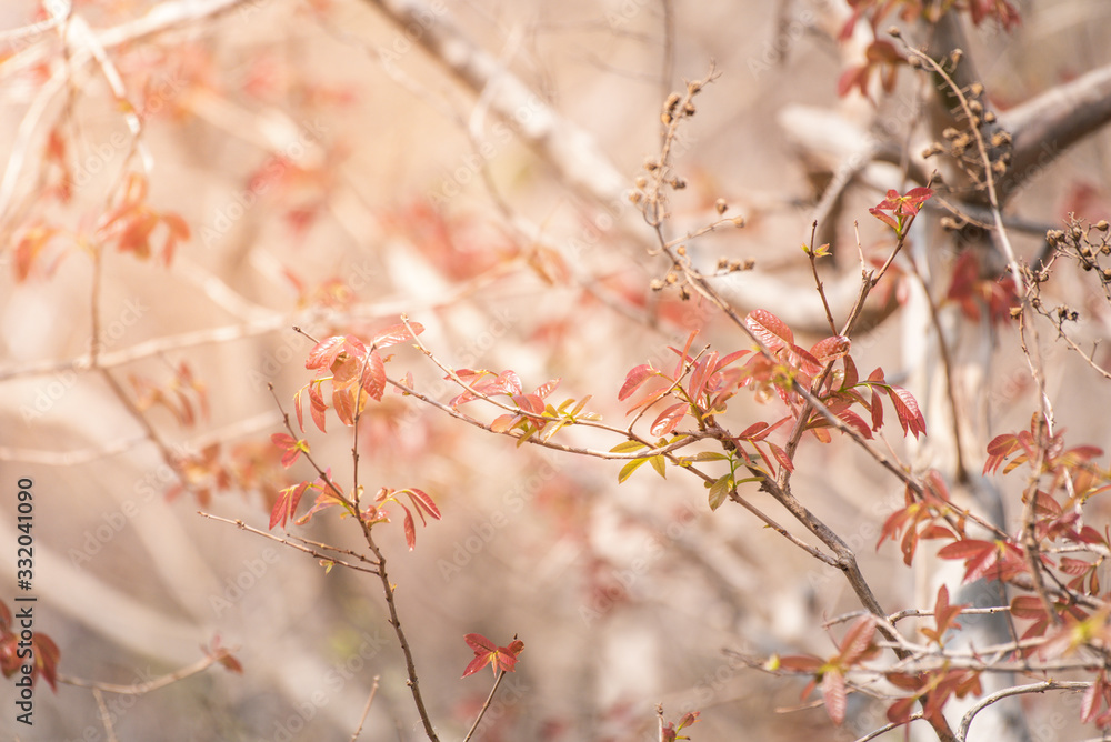 Red leaves, spring leaves, seasonal. For the background presents the concept of foliage in beautiful nature.