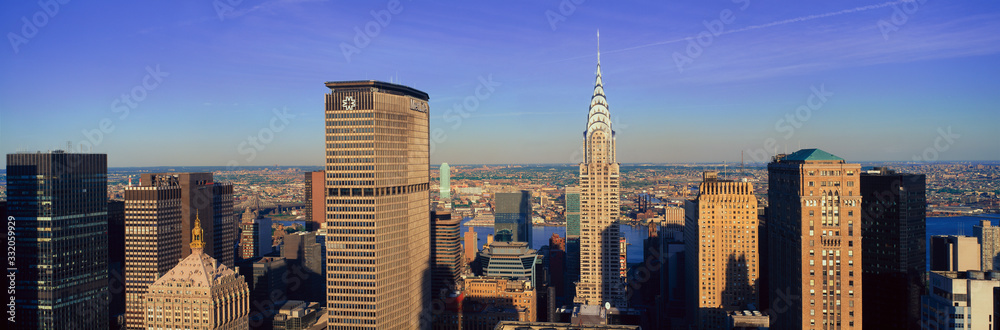 Panoramic aerial view of Chrysler Building and Met Life Building, Manhattan, NY skyline