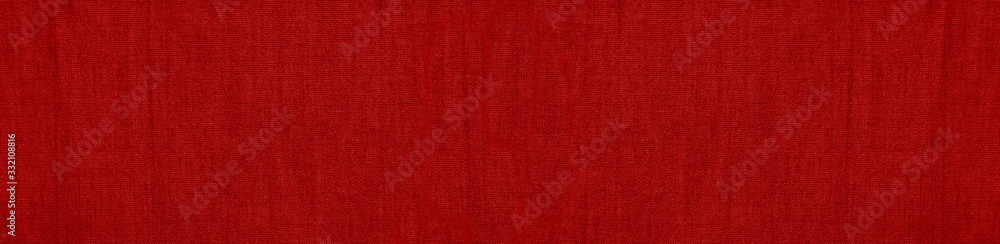 Abstract red background. Texture of natural cotton fabric. Red banner with copy space for your design.