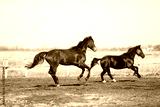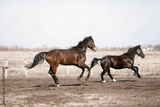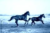 Beautiful horses run in the arena