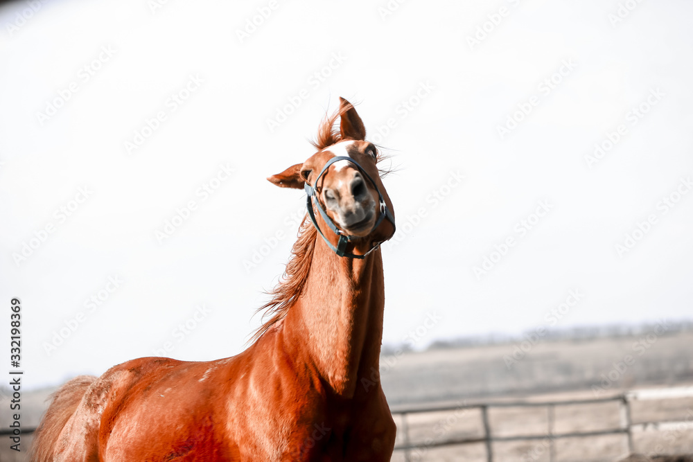Beautiful horses run in the arena