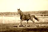 Beautiful horses run in the arena