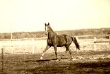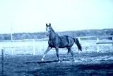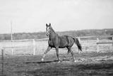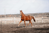 Beautiful horses run in the arena