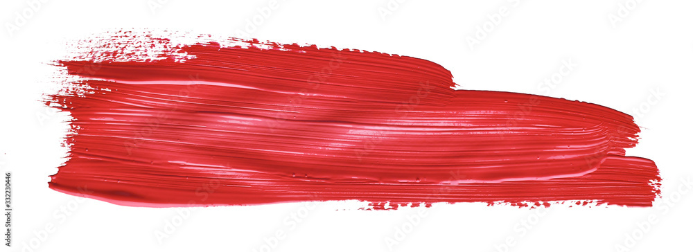 Red colored brush stroke paiting over isolated background, canvas watercolor texture, red lipstick smudge