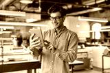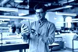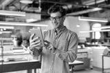 Work and have fun. Young businessman posing in office