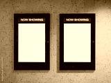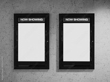 Mock up poster frame on wall. Cinema Now showing movie Poster in Movie theatre