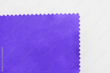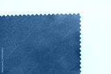 Blue fabric texture swatch piece isolated on white background. Top view of cut velvet blue material design, cloth fragment close up