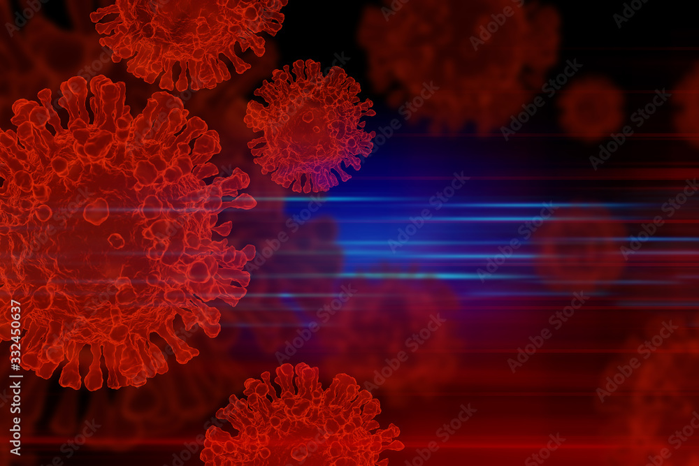 blood dna of nCov covid-19 structure coronavirus crisis outbreak pandemic biohazard cell atom disease syndrome in wuhan china in background 3d illustration rendering, healthy medical concept
