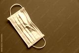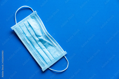 Medical disposable face mask protect from covid-19 or coronavirus on blue table background, healthy and medicine concept