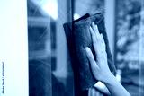 close up hand of woman cleaning with cleanser spray into the mirror window at home