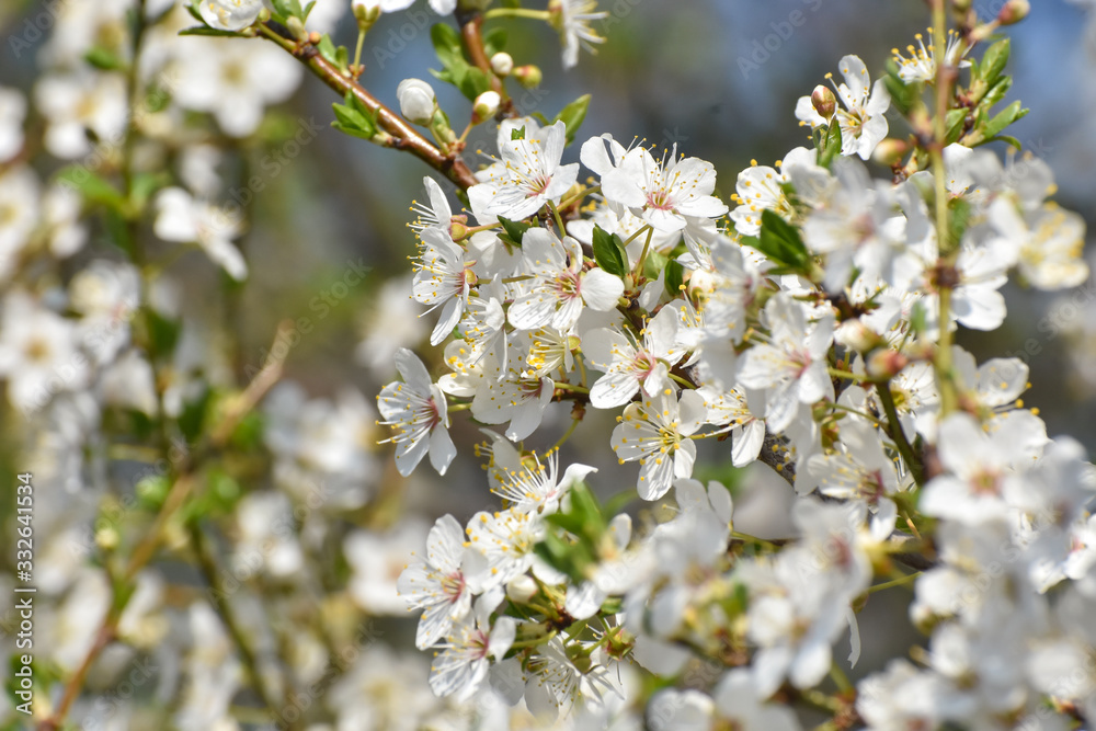 Blooming tree, Spring background. Wild plum in full bloom in spring