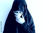 the woman wearing black clothes and hijab save body with mask from corona virus and illness.