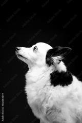 Beautiful black and white dog on a background