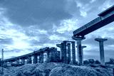 Building Preobrazhensky bridge over the Dnieper river in Zaporizhia, Ukraine.