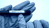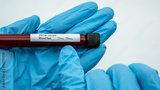 Laboratory technician hand hold blood sample tube for corona virus test