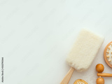 Bath Accessories on white stone background