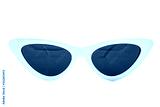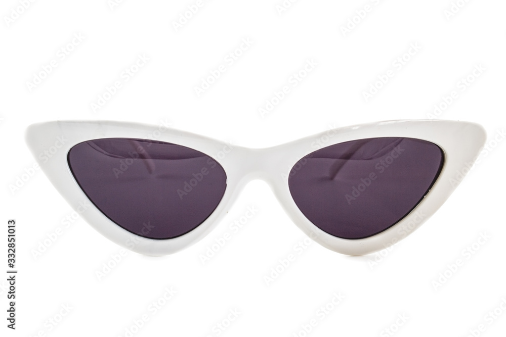 White cat eye sunglasses with triangle shape and black glass isolated on white background - Front View