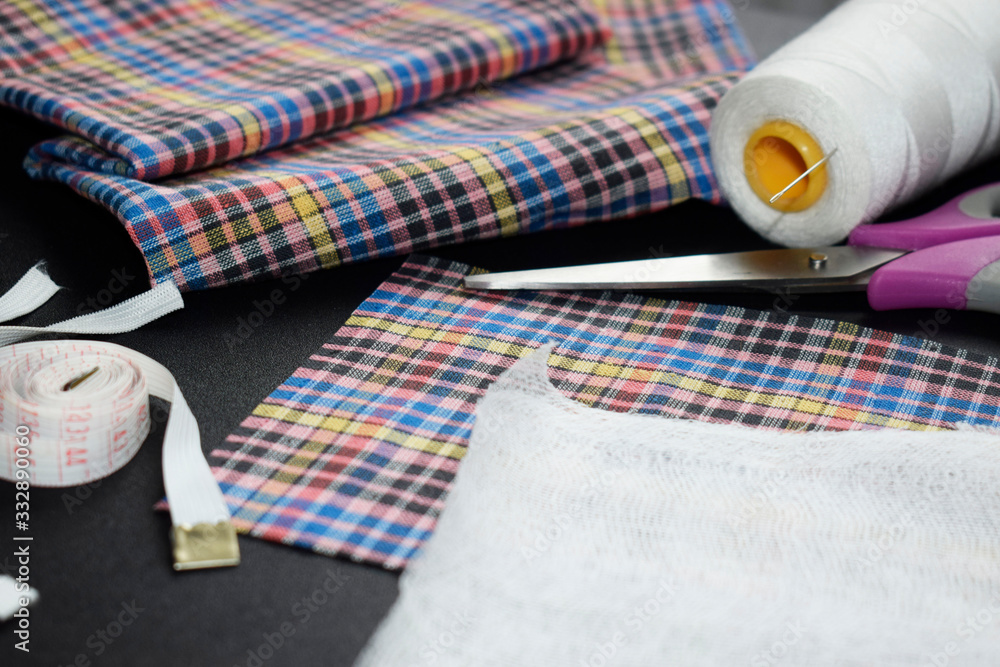 Necessary materials for creating a mask: gauze, fabric, thread, needle, scissors, elastic. centimeter.