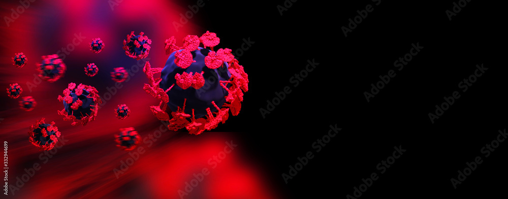 Coronavirus 2019-nCov novel.Pandemic coronavirus covid-19 resposible for asian flu outbreak and coronaviruses influenza as dangerous flu strain cases as pandemic.3d rendering.Virus black Background.