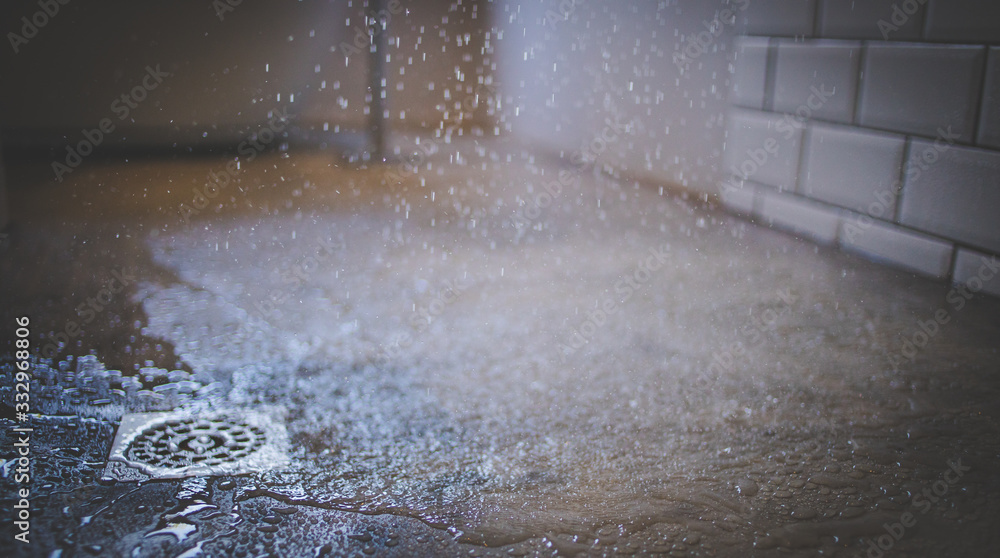 Close up image of water from a shower falling on a shower floor in a luxury bathroom