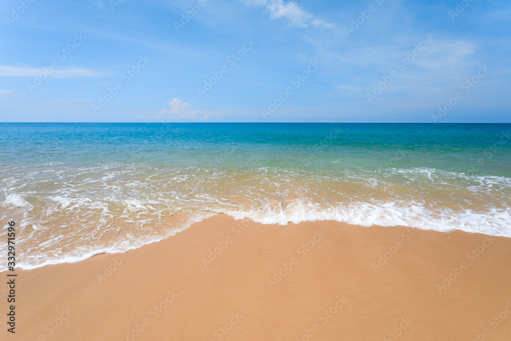 Sea view from tropical beach with sunny sky. Phuket beach Thailand.