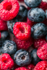 Fresh Summer Berries mix Background with Strawberry, Raspberry, Red currant, Blueberry and Blackberry.